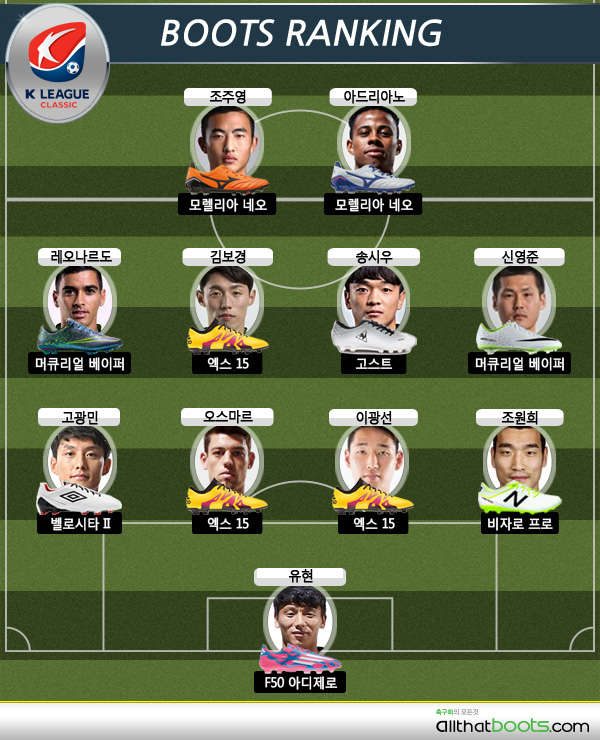 현대오일뱅크 K리그 클래식 2016] - 6 라운드 베스트 11 Boots Ranking