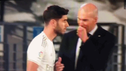 | 330일만에 경기에 나서는 아센시오 긴장을 풀어주는 지단.gif | |