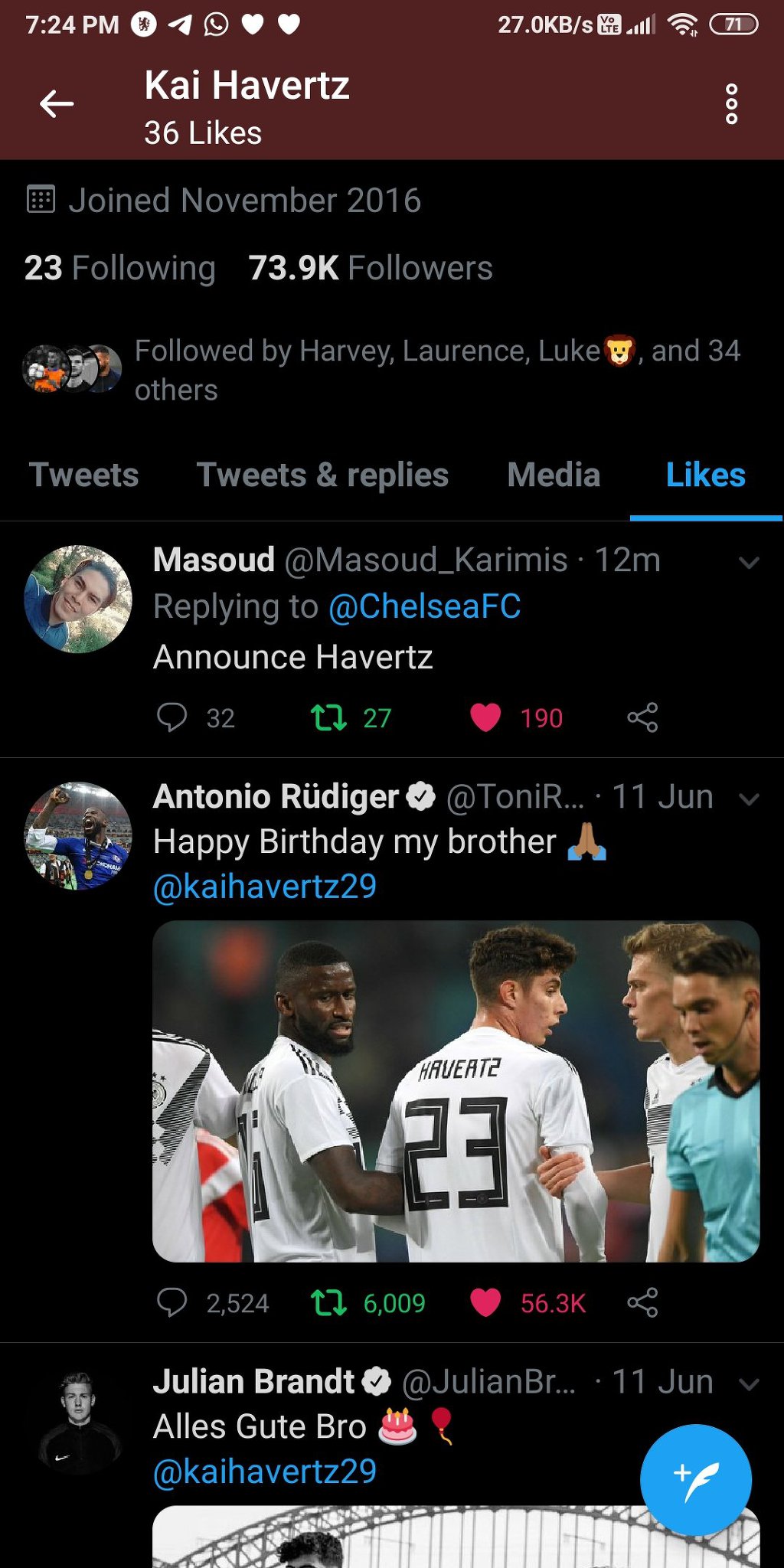 | 현재 첼시와 강하게 링크중인 하베르츠의 '좋아요'피셜ㄷㄷㄷ | |
