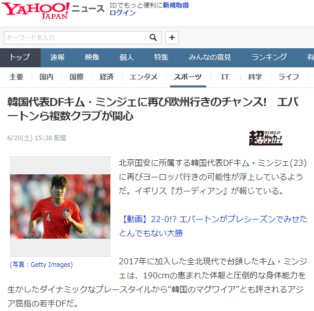 영국 '가디언'도 18일 "아시아 축구의 샛별의 한 사람"인 그에 복수의 클럽이 관심이라 보도.