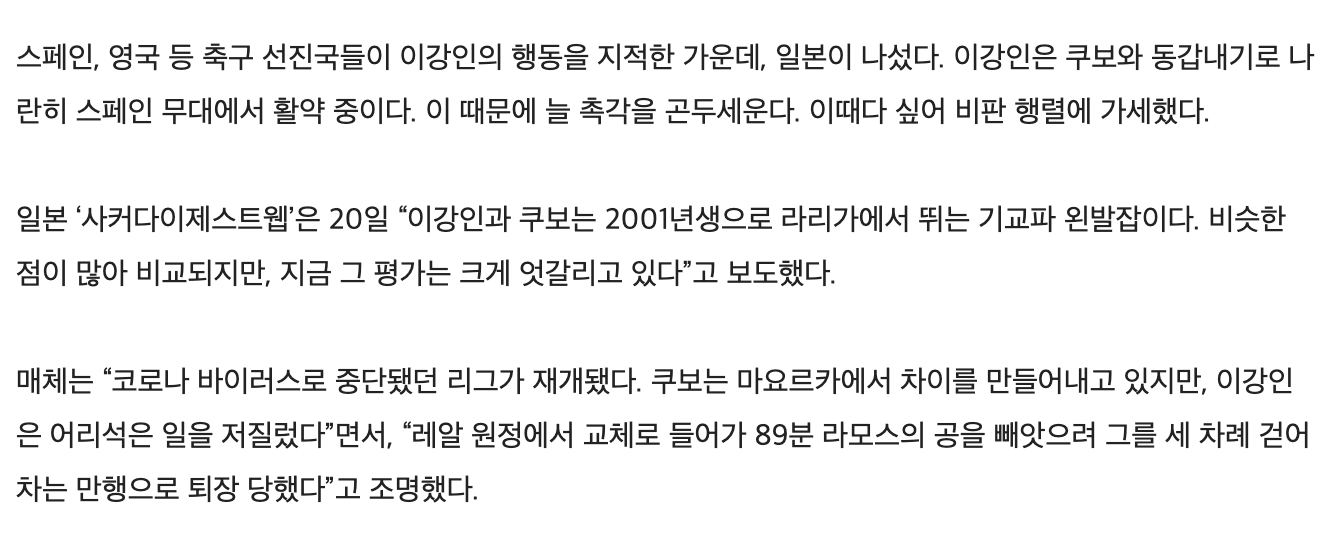 ["어리석은 이강인" 쿠보와 비교한 일본 언론의 조롱]