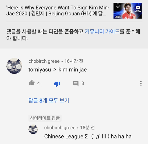 ["중국 리그 선수라 무시.. "김민재 하이라이트 영상에 달린 일본인의 댓글]