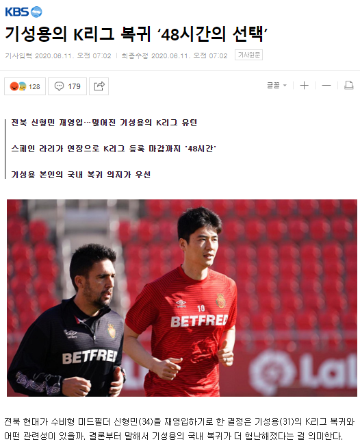 만약 기성용이 국내 복귀를 원하고, 또 그의 영입을 원하는 K리그 구단이 있다면 이 자가 격리 기간까지 고려한 발 빠른 사전 움직임이 필요한 셈이다.
