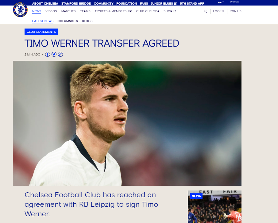 [[오피셜] 첼시 베르너 영입 완료]