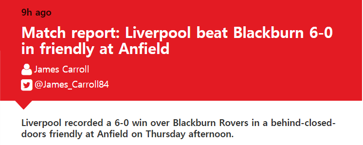 [친선경기에서 블랙번을 6대0으로 격파한 리버풀]