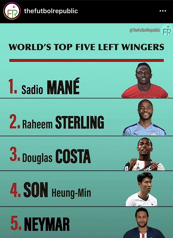 [해외매체 선정 좌측 윙어 순위(feat.손흥민)]