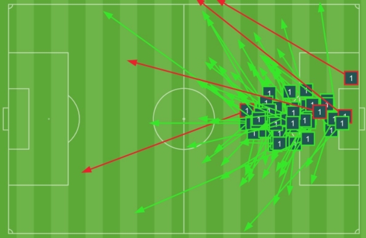오늘 새벽 마요르카 전에서 나온 슈테겐의 패스 맵ㄷㄷ 이게 골키퍼의 패스맵이라니ㅋㅋㅋㅋㅋㅋ 패스 성공 64/68 (94%) 그냥 최후방 수비수 수준