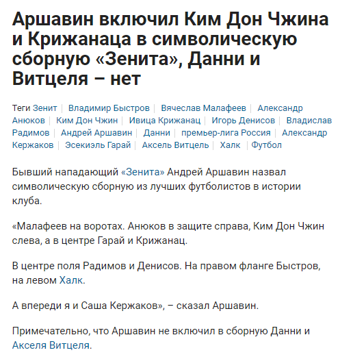 '아르샤빈'이 뽑은 제니트 BEST 11