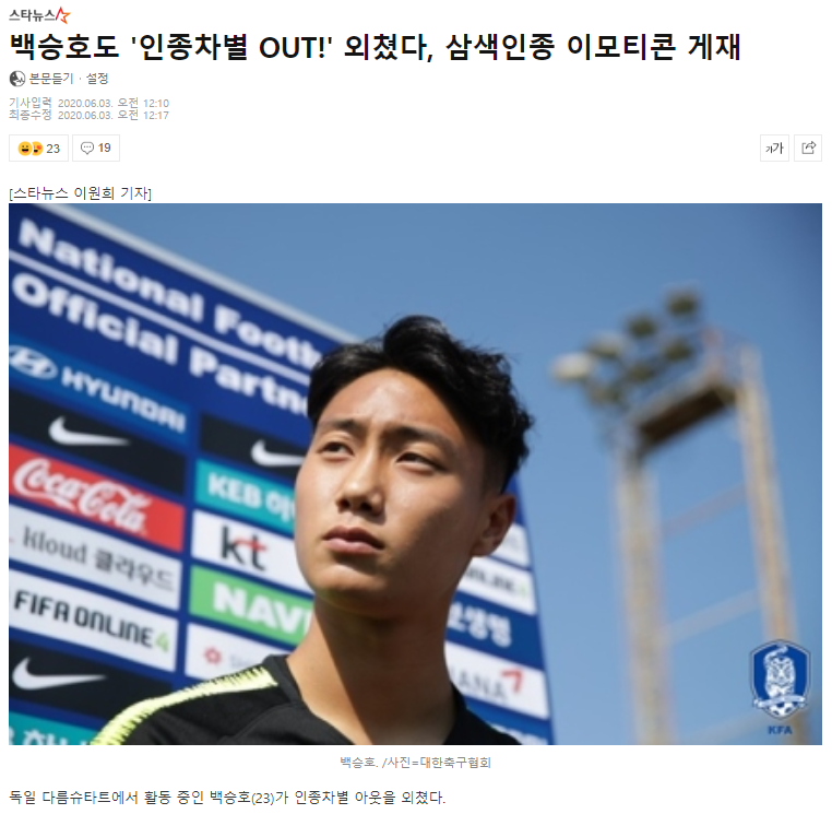 [[스타뉴스]백승호도 '인종차별 OUT!' 외쳤다]