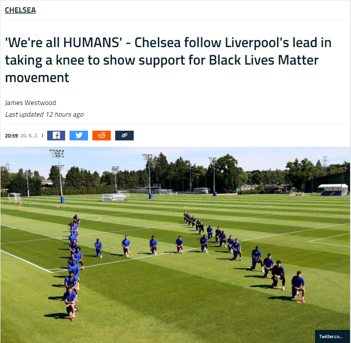 '우리는 모두 사람이다' 첼시는 Black Lives Matter 운동을 지지한다.