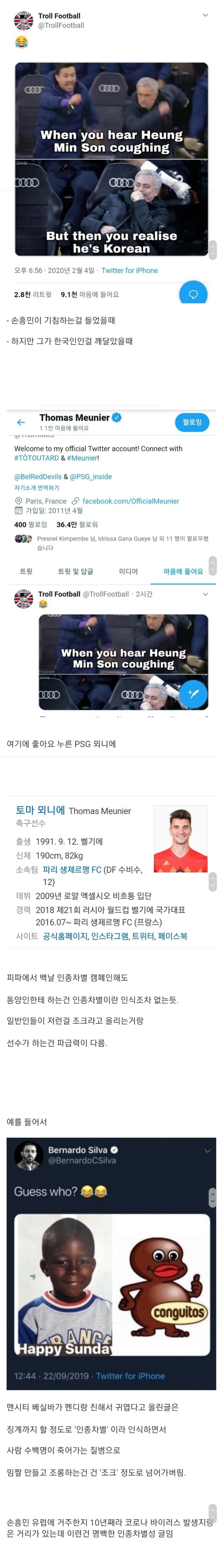 그리고 이전에 손흥민 인종차별 글에 좋아요를 눌렀던 뫼니에