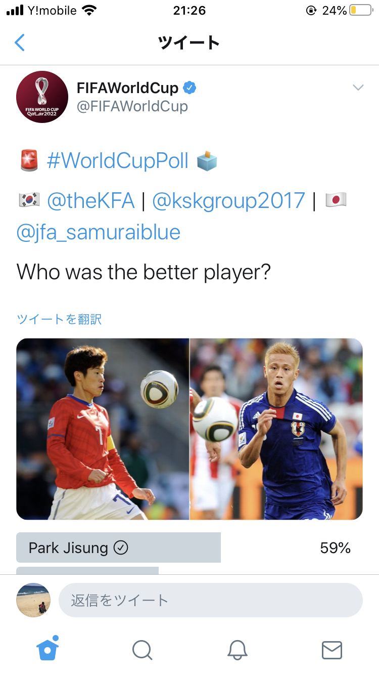 피파월드컵 트위터계정에서 박지성 vs 혼다 경쟁에 불을 붙였다.