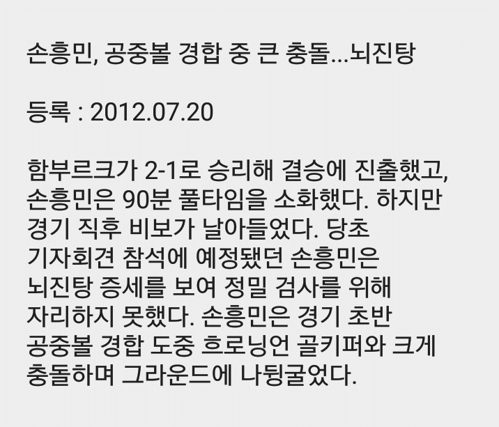평소 손흥민이 헤더를 잘 안 하는 이유는.. 아래와 같은 부상들이 많았기 때문 아닐까요?