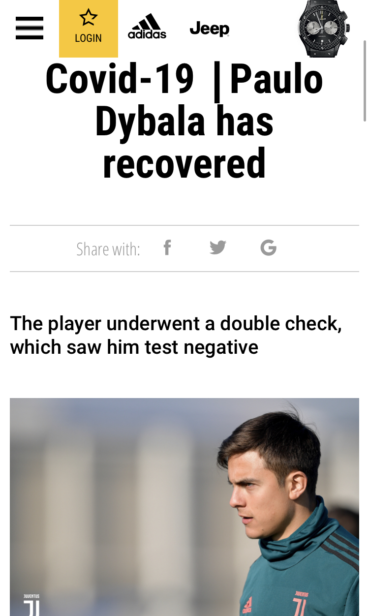 [[오피셜]파울로 디발라 드디어 코로나 바이러스 완치!!]