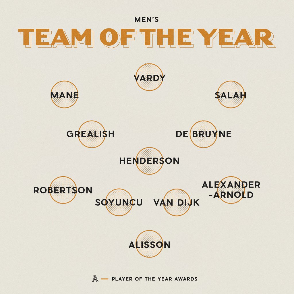 알리송(리버풀) 트렌트 알렉산더-아놀드(리버풀) 버질 반 다이크(리버풀) 찰라르 쇠윈쥐(레스터) 앤디 로버트슨(리버풀) 케빈 더 브라위너(맨체스터 시티) 조던 헨더슨(리버풀) 잭 그릴리쉬(아스톤 빌라) 모하메드 살라(리버풀) 제이미 바디(레스터) 사디오 마네(리버풀)