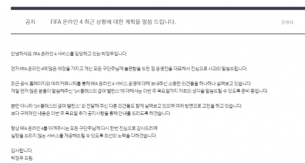 뉴스에서도 현질 유도를 부추기는 도박성 온라인 게임으로 나올정도로 유저들의 분노가 극에 달았던 피파온라인4