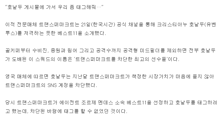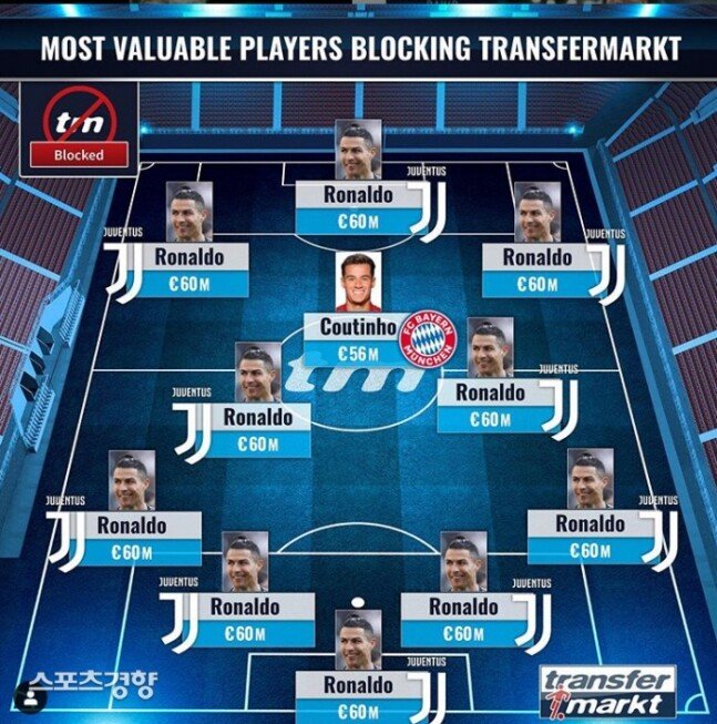 [호날두를 저격한 트랜스퍼마크트의 공식 인스타]