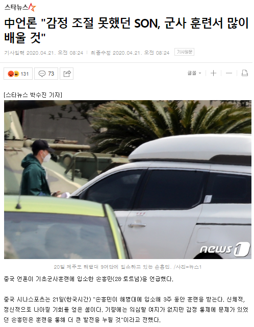 | 中언론 "감정 조절 못했던 SON, 군사 훈련서 많이 배울 것" | |