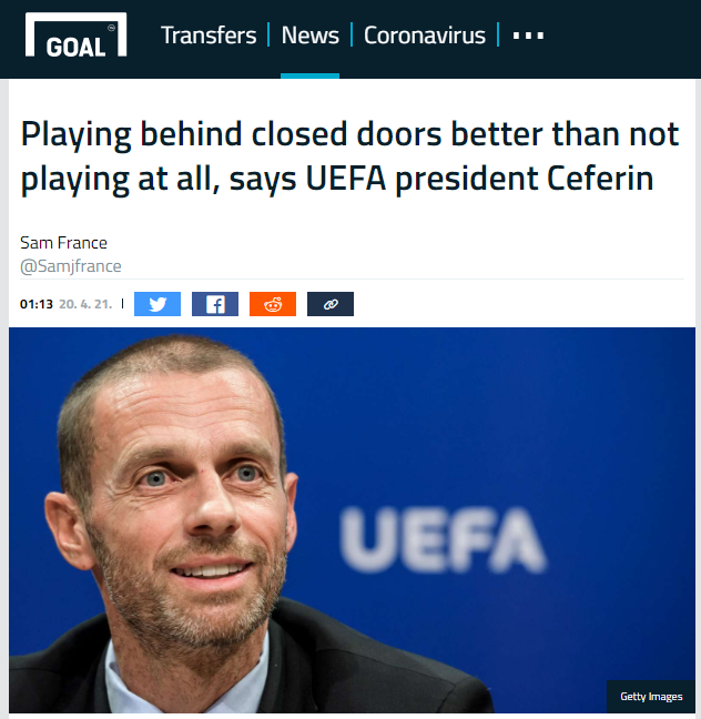 [UEFA 회장의 무관중 경기에 대한 생각]