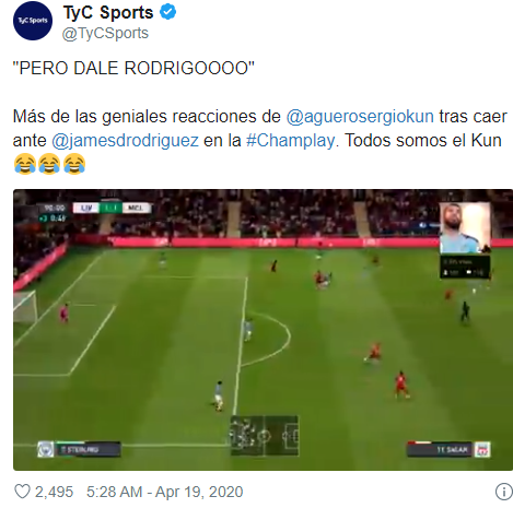 아구에로는 하메스와 게임 중 "게임이 왜 이런지 모르겠다. 제대로 콘트롤러가 작동하지 않는다. 이렇게 반응하면 안된다"라거나 "(게임 상의) 로드리고가 제대로 수비를 하지 않는다"라고 불평을 터트렸다. 실제 경기를 패배한 것처럼 격한 액션을 보여준 아구에로에 대해 원풋볼은 "컨트롤러는 분명히 부숴졌다고 생각한다. 헤드셋도 마찬가지일 것"이라고 미소를 보였다. 아구에로는 탈락했지만 챔플레이는 계속된다. 'Tyc sports'와 선수들의 소셜 네트워크나 트위치를 통해 계속 방송된다. 수익금의 전액은 아르헨티나 적십자사에 기부될 계획이다.