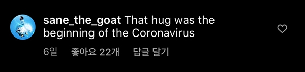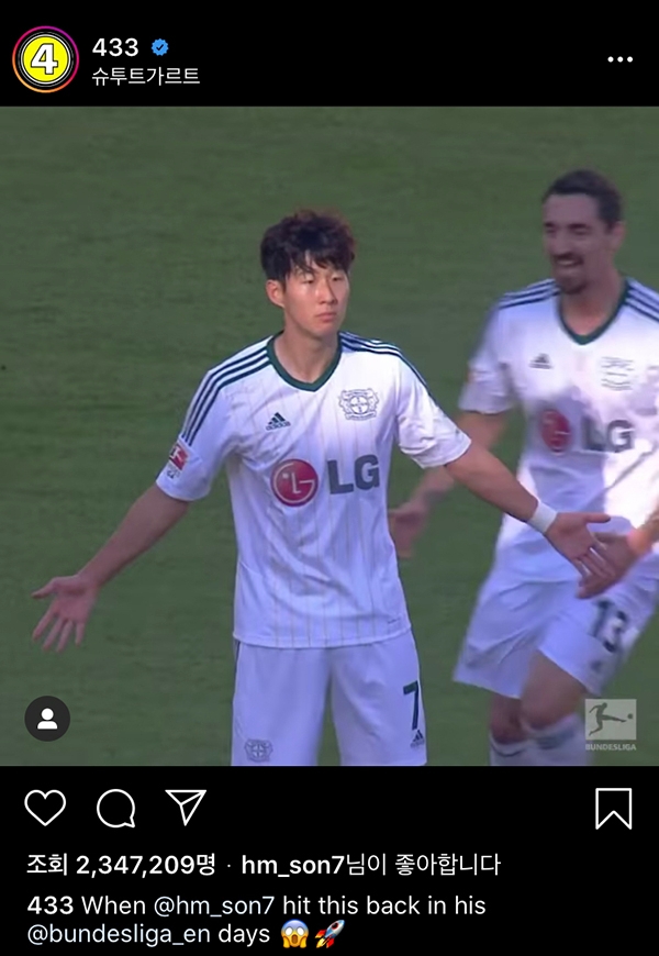 (433에서 올린 손흥민 골영상. 그 아래 달린 댓글 수준이..) 한 팬이 득점 후 동료들과 포옹하는 손흥민의 모습에 “저 포옹부터 코로나19가 시작됐다”라며 인종 차별성 댓글을 달았다. 해당 댓글은 22개의 공감을 얻기도 했다.