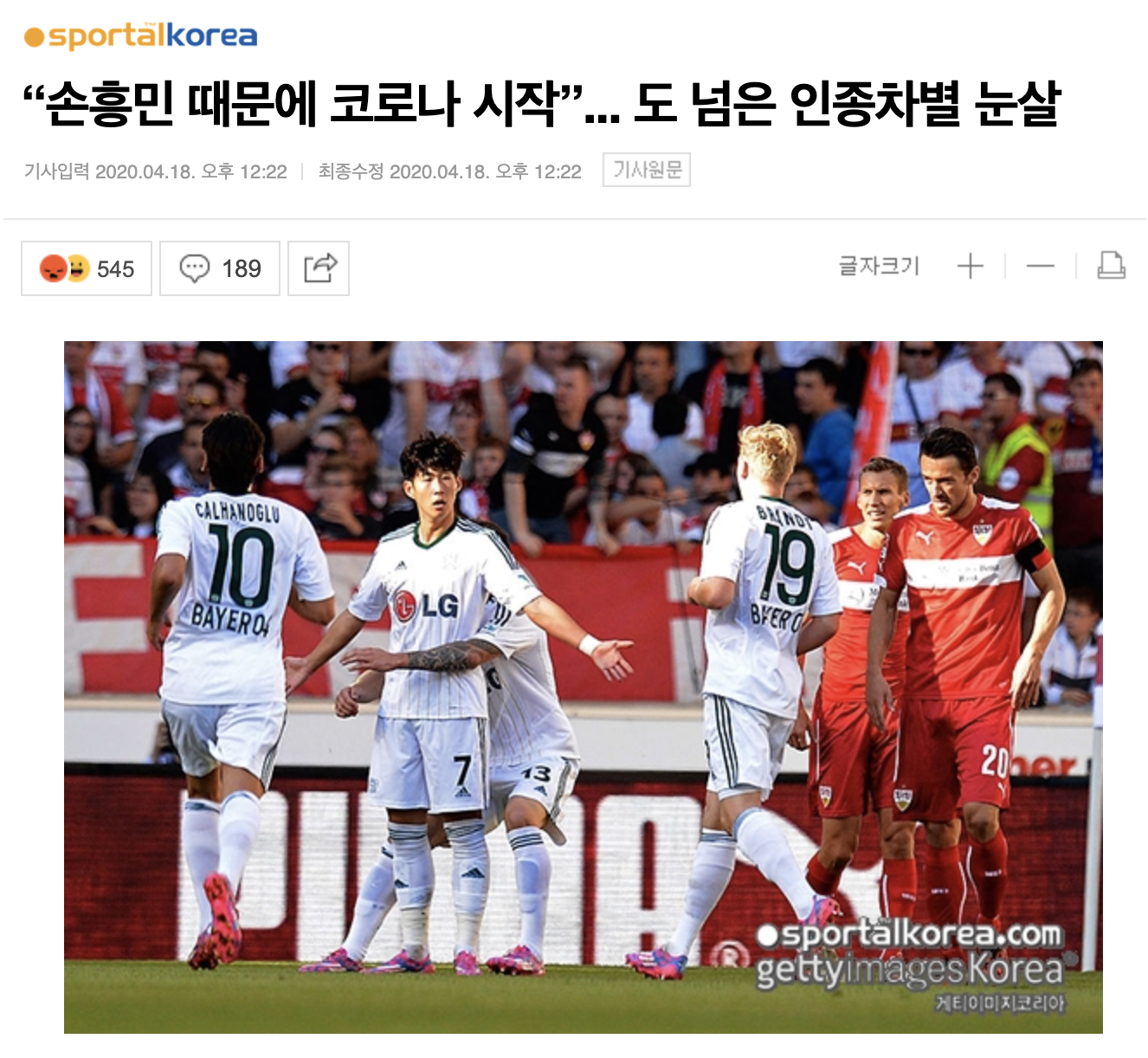| "손흥민 때문에 코로나 시작됐다" 외국인의 인종차별 댓글 | |
