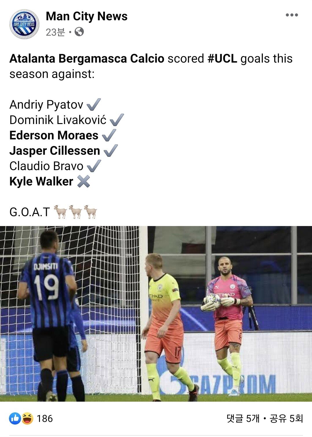 이번시즌 챔피언스리그에서 아탈란타를 만나서 유일하게 골을 먹히지 않은 골키퍼는 카일워커 뿐이다 ㅋㅋㅋㅋㅋㅋㅋㅋㅋㅋㅋㅋㅋ