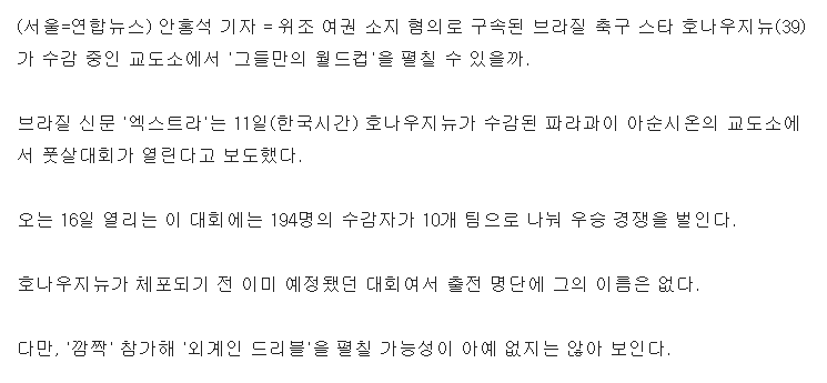 [호나우지뉴 수감된 교도소, 풋살대회 열린다]
