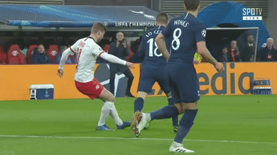 토트넘 상대로 라이프치히 자비처의 멋진 선제골.gif