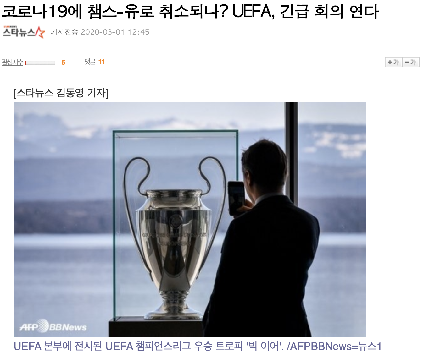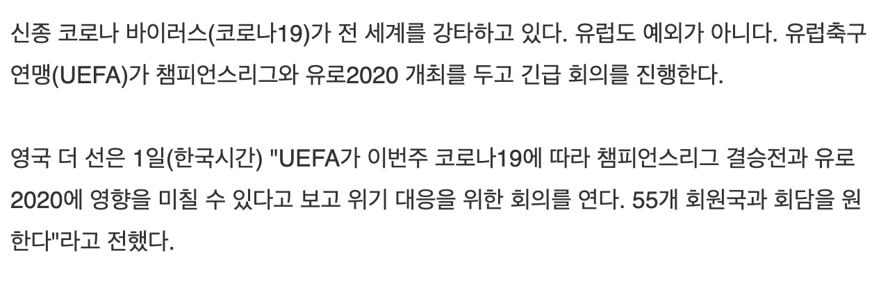 [코로나 19로 UEFA 긴급 회의, 챔스, 유로 2020 취소되나?]