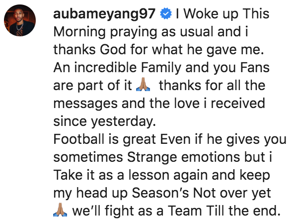오늘 아침에 일어나 평소처럼 기도하고, 제게 주신 모든 것들에 감사했습니다. 놀라운 가족들(동료들)과 팬 여러분들도 그 감사함의 일부입니다. 어제 이후로 보내주신 모든 격려의 메시지와, 여러분들로부터 제가 받을 수 있었던 사랑에 감사드립니다. 축구란건 참 대단합니다. 어떨 때는 참 이상한 감정을 선사할 때도 있지만, 그럼에도 그 모든 것들을 다시 한 번 교훈으로 삼아 힘을 내려고 합니다. 시즌은 아직 끝나지 않았습니다. 우리는 끝까지 싸워나갈겁니다.