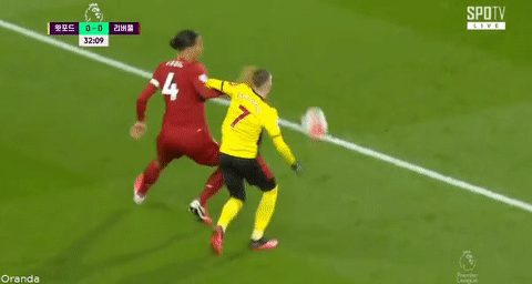 [반 다이크랑 몸 싸움하다 무릎 꺾인 선수ㄷㄷ]