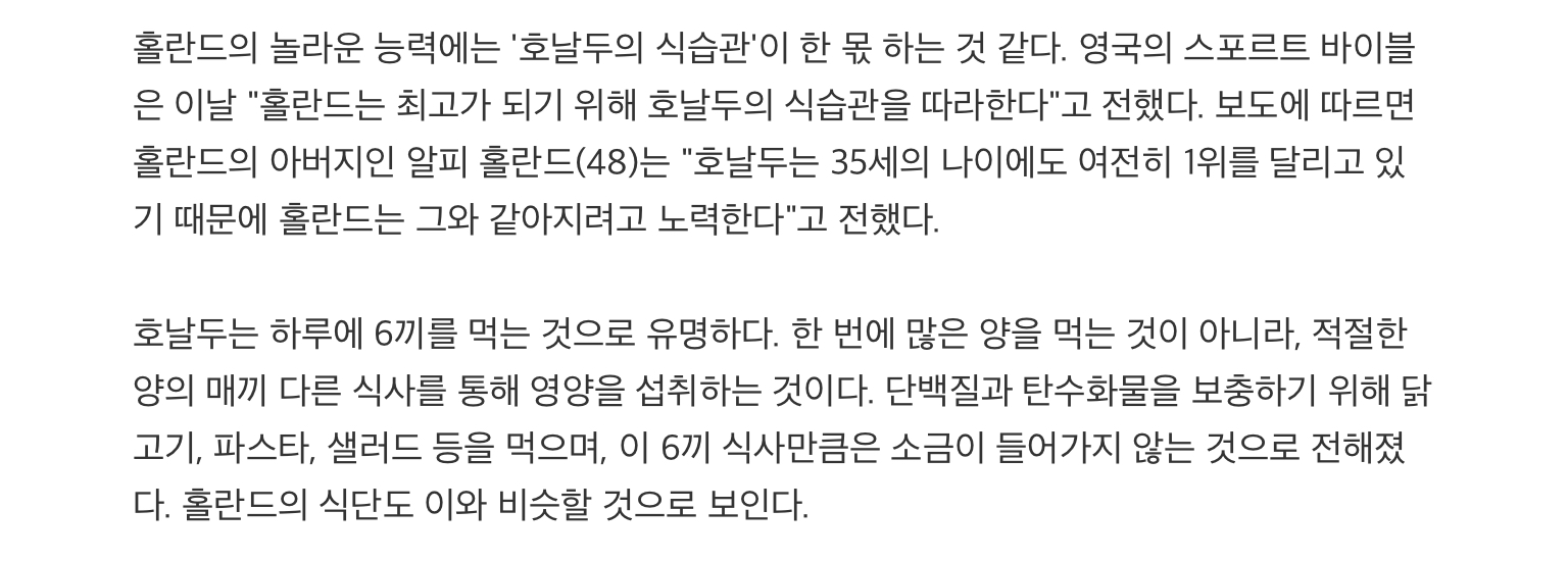 [홀란드는 호날두를 닮기 위해 OOO을 따라한다]