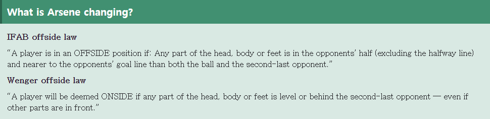 | 오프사이드 룰을 개정하려고 하는 아르센 벵거 | |