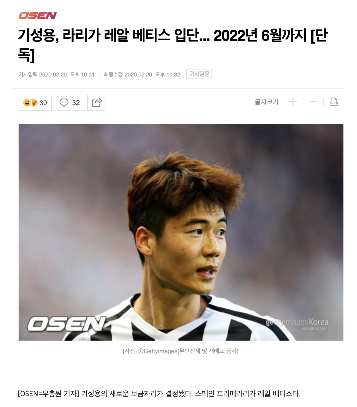 [[속보]기성용 레알 베티스 입단 2022년 6월까지 계약]