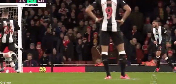 오른발로 찬 공이 디딤발 맞으며 스핀 걸리고 감차 됨ㄷㄷ 근데 의도는 아닐 거 같음ㅋㅋㅋ
