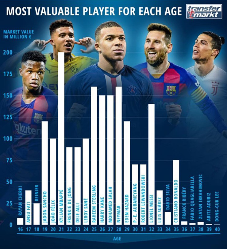 ['한국인 포함' 연령대별 가장 가치있는 선수들]