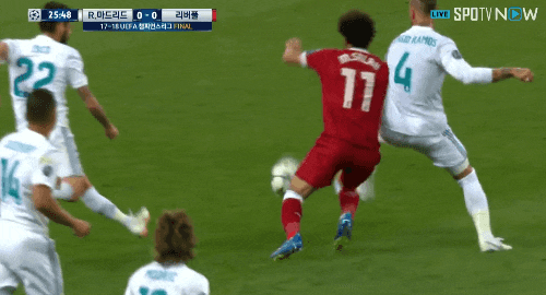 전반전 라모스와 경합도중 부상을 당하는 살라