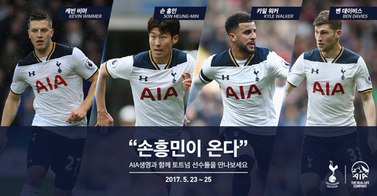 손흥민 등 토트넘 선수들은 23일 서울 중구 순화동 AIA타워를 방문해 AIA생명 임직원, 영업인력, 제휴사, 일반인 고객들, 초등학생 자녀들과 만남의 자리를 갖는 것으로 숨가쁜 방한 일정을 시작할 예정이다.
