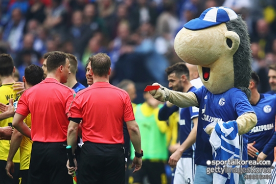 [스포탈코리아] 노영래 기자= 선수도 감독도 아닌, 구단 마스코트가 징계를 받을 뻔 했다. 독일 살케와 도르트문트간의 ‘레비어 더비’에서 일어난 해프닝이다.