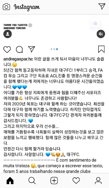 [[오피셜]대구FC 안드레 감독 사퇴]