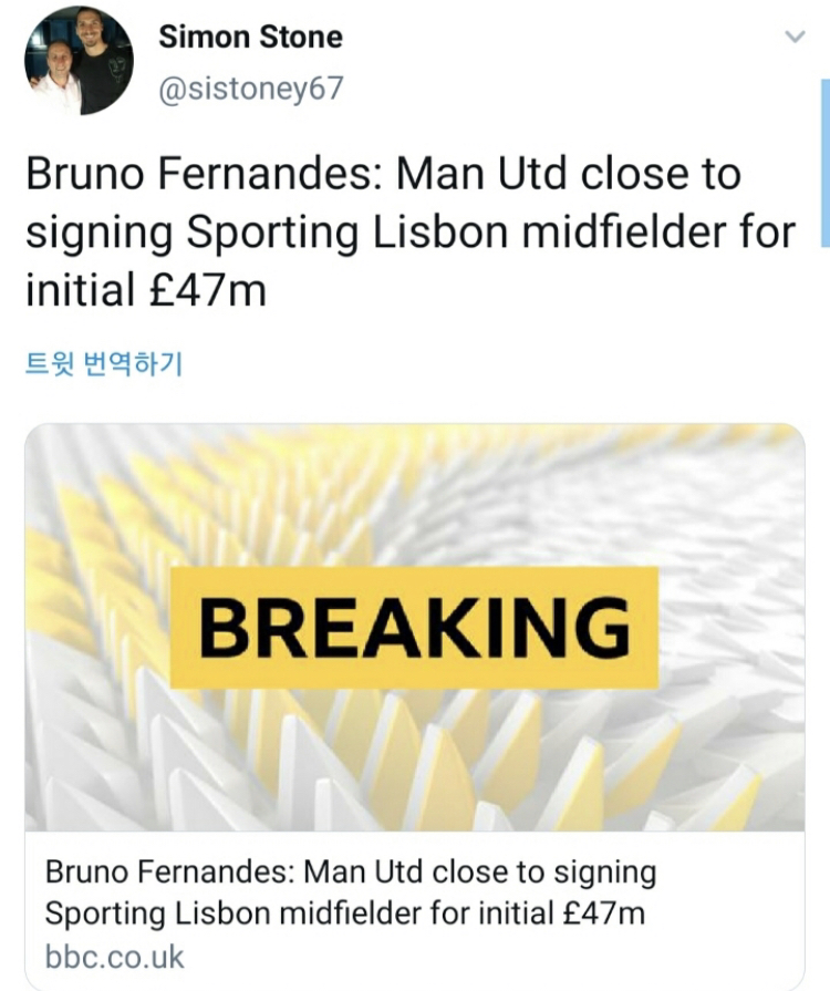 [[BBC] 맨체스터 유나이티드 브루노 페르난데스 영입 근접]