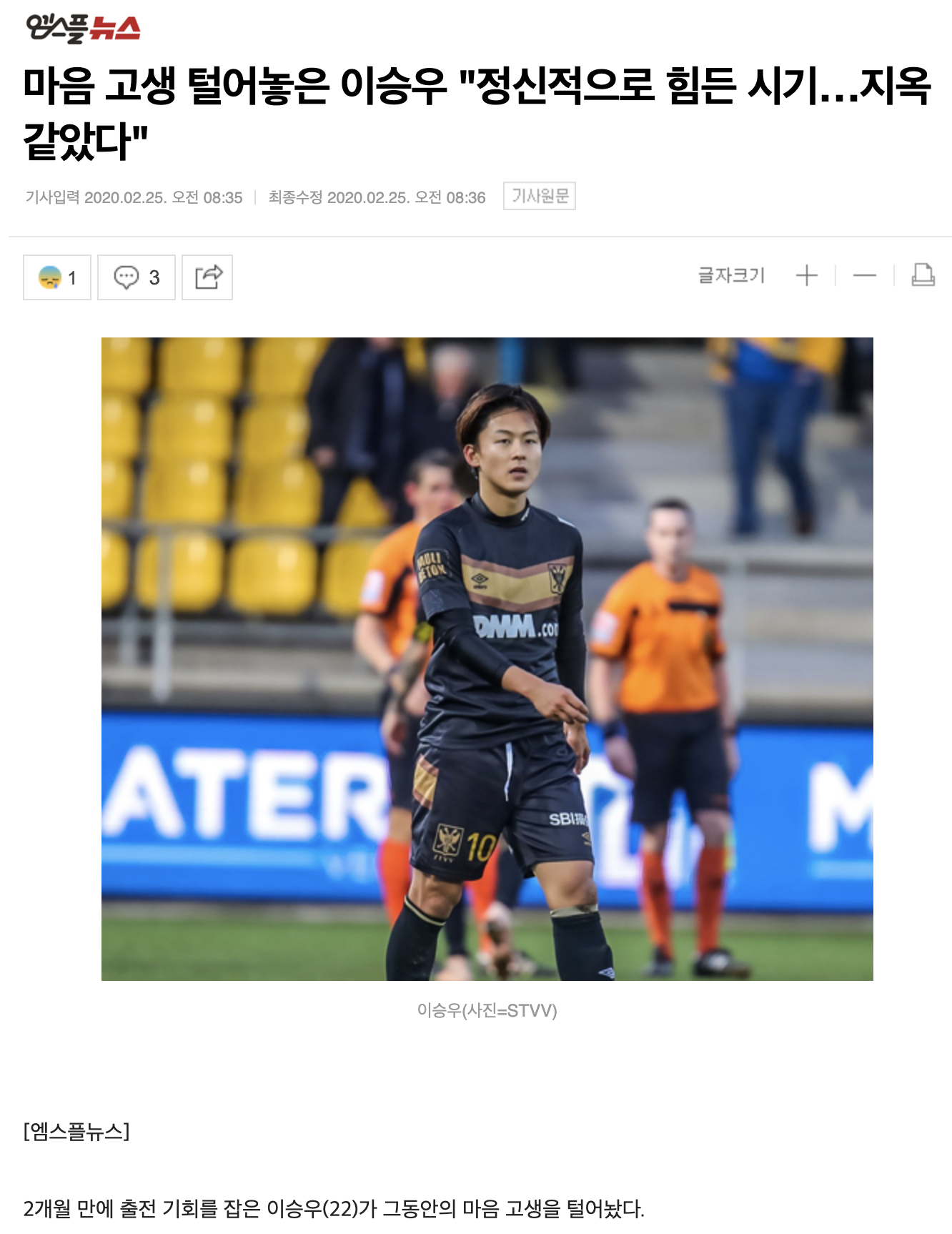 -경기 후 이승우는 벨기에 현지 매체 '헤트 벨랑 반 림벅'을 통해 "특히 정신적으로 힘든 시기였다. 지옥 같았다. 적은 출전 기회를 대처하는 일은 쉽지 않았다. 언제 어디서나 축구를 하고 싶다. 앞으로 더 많은 기회를 얻기 위해 최선을 다하겠다"고 다짐했다.