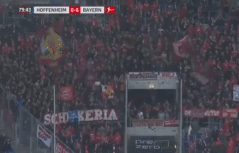 뮌헨이 6대0으로 경기를 이기고 있던 상황. 뮌헨 팬들이 호펜하임 구단주를 욕하는 현수막을 듦. 호펜하임 팬들은 흥분하고 뮌헨 감독이 자제 시킴. 이후에도 상황이 나아지지 않자 팬들은 경기장을 나가기 시작함. 현수막 내리고 경기를 재개했지만 양팀 선수들은 경기를 보이콧 하듯이 아래처럼 공돌이를 함