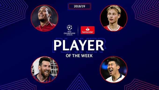 지난시즌 챔스 최고의 선수 투표 메시 - 반다이크에 이어서 3위