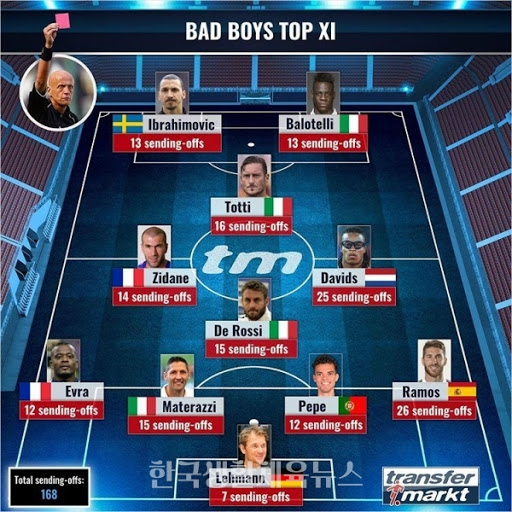 이탈리아가 많은 거 보면 세리에가 거칠긴 거친가 보네요ㄷㄷ 의외로 여기서 제외된 선수는 누가 있을까요?