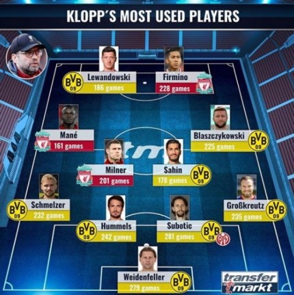 [클롭이 가장 많이 기용한 선수 '베스트 11']