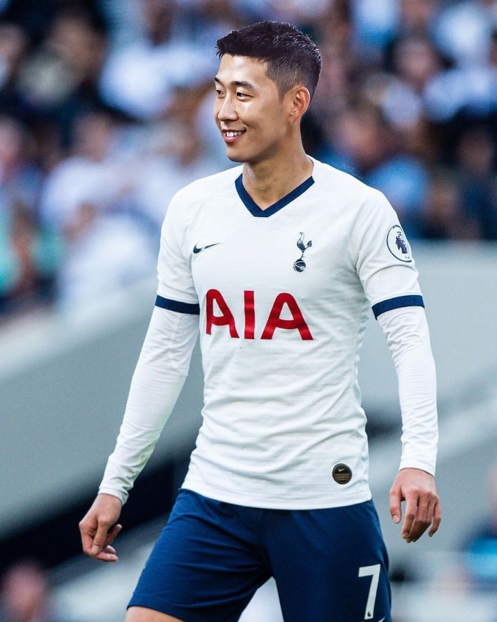 [토트넘 유니폼 입은 짧은머리 손흥민]