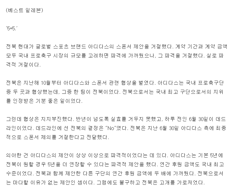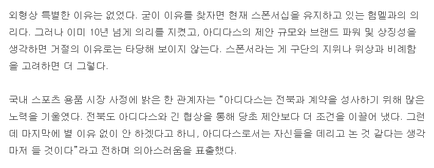 [전북, 아디다스의 파격적인 스폰서 제안 거절.. 그 이유는?]