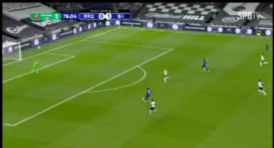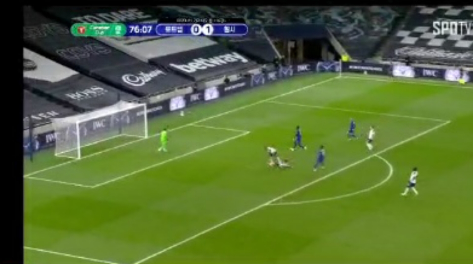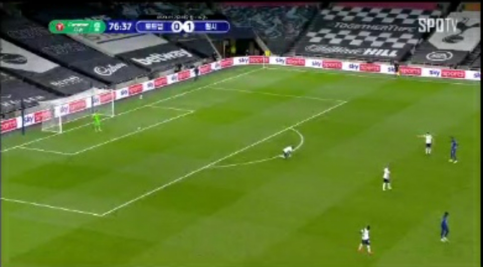 다행히 오도이가 날려서 실점 위기 벗어난 토트넘